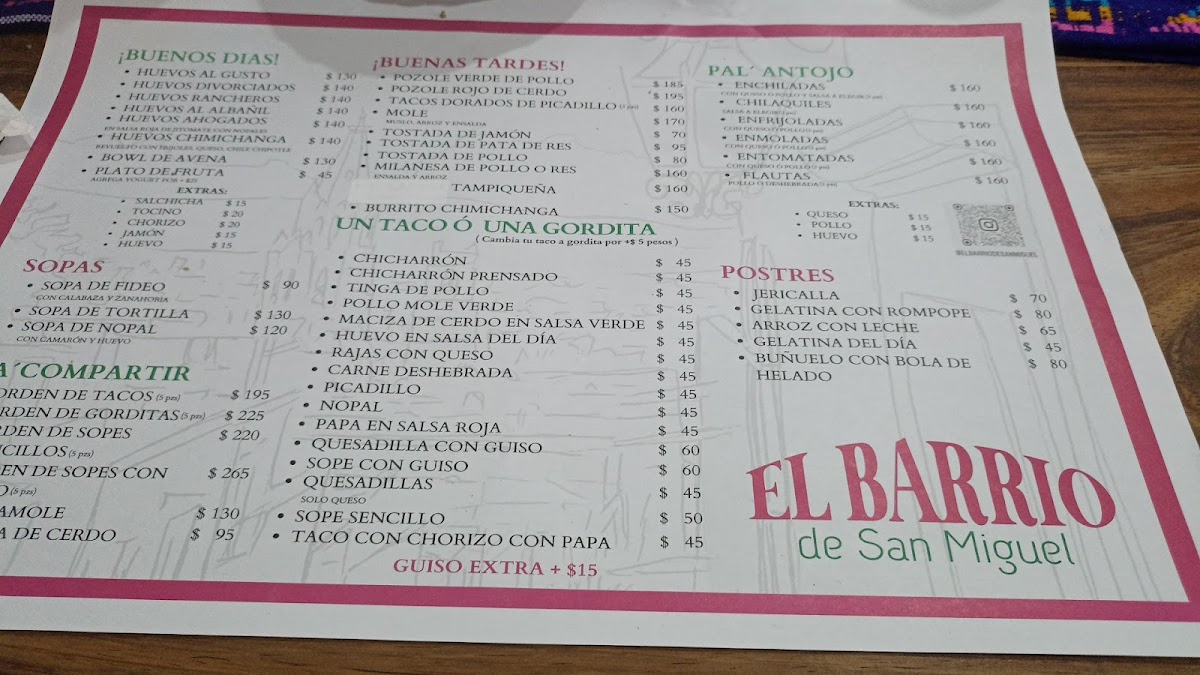 Introducing the menu at El Barrio de San Miguel, a delightful culinary escape located in the heart of San Miguel de Allende. This vibrant restaurant dazzles with authentic Mexican cuisine and a welcoming ambiance, enhanced by beautiful murals and refreshing air conditioning—an essential during hot days.